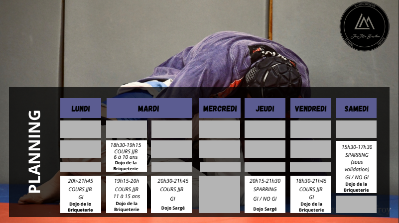 Publié sur Adrien DEBSITrustindex vérifie que la source originale de l'avis est Google. Ambiance conviviale, une super équipe pédagogique avec différent style qui fait envie de revenir pour en apprendre d'avantage sur les multiples techniques du JJB. 🤙Publié sur Luka SalamiTrustindex vérifie que la source originale de l'avis est Google. Un club de très grande qualité avec des instructeurs et aussi des licenciés compétents et respecteux. Un vrai plaisir d'être inscrit dans ce club 🦾Publié sur Christophe LoyerTrustindex vérifie que la source originale de l'avis est Google. Un super club de ju-jitsu brésilien, les coachs sont à l'écoute pour les nouveaux comme de les anciens leur bienveillance, mon fils a commencé il y a un an j'ai vu une nette progression rien à dire j'encourage ,de plus nouveau cette année font du JJB kid🙏😉Publié sur nazcoo ayiTrustindex vérifie que la source originale de l'avis est Google. Le club est familiale et sportif et on s’y sent comme chez soi Les coachs sont au top et donnent l’envie d’apprendre le jjb Il y a un cours d’essai et une facilité de paiement pour adhérer au club si vous le voulezPublié sur Safiya BasmiTrustindex vérifie que la source originale de l'avis est Google. Ambiance au top, sourire et solidarité au rdv, avec des cours instructifs et formateur parfait pour évoluer techniquement, sportivement et humainement 💪🏻👍🏻Publié sur Shin0_ amTrustindex vérifie que la source originale de l'avis est Google. Inscris en septembre et aucun regret parfaitPublié sur Robin TOURATIERTrustindex vérifie que la source originale de l'avis est Google. Super club au Mans, équipe de passionné du JJB, ambiance familiale et fraternelle, un club au top et qui ne fait que progresserPublié sur Cyril VardanTrustindex vérifie que la source originale de l'avis est Google. Arrivé en sept 2024 dans ce club. 4 à 5 créneaux d'entrainement proposés Cours enfants proposés aussi ( 6 à 15 ans ) L'esprit JIUJIT' est bel et bien présent dans ce club Essayez !!! c'est adopté...Publié sur Nourdine AchirTrustindex vérifie que la source originale de l'avis est Google. Très bon club 💪🏽